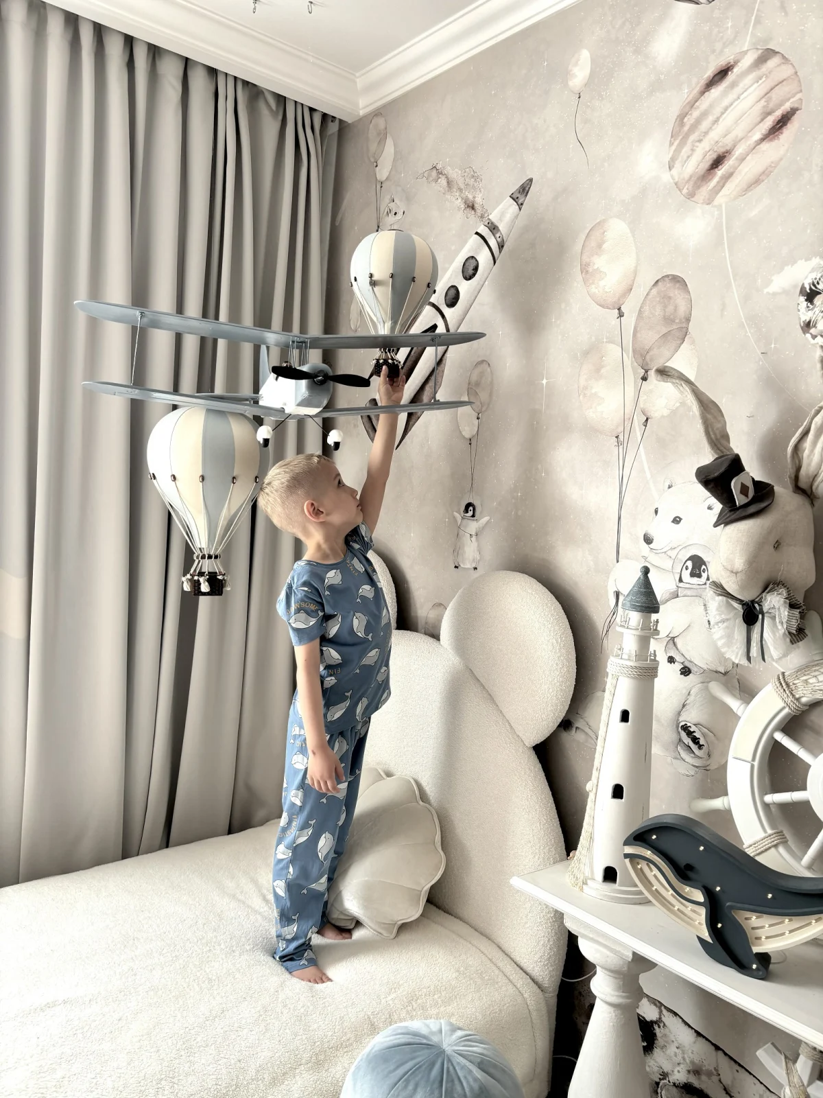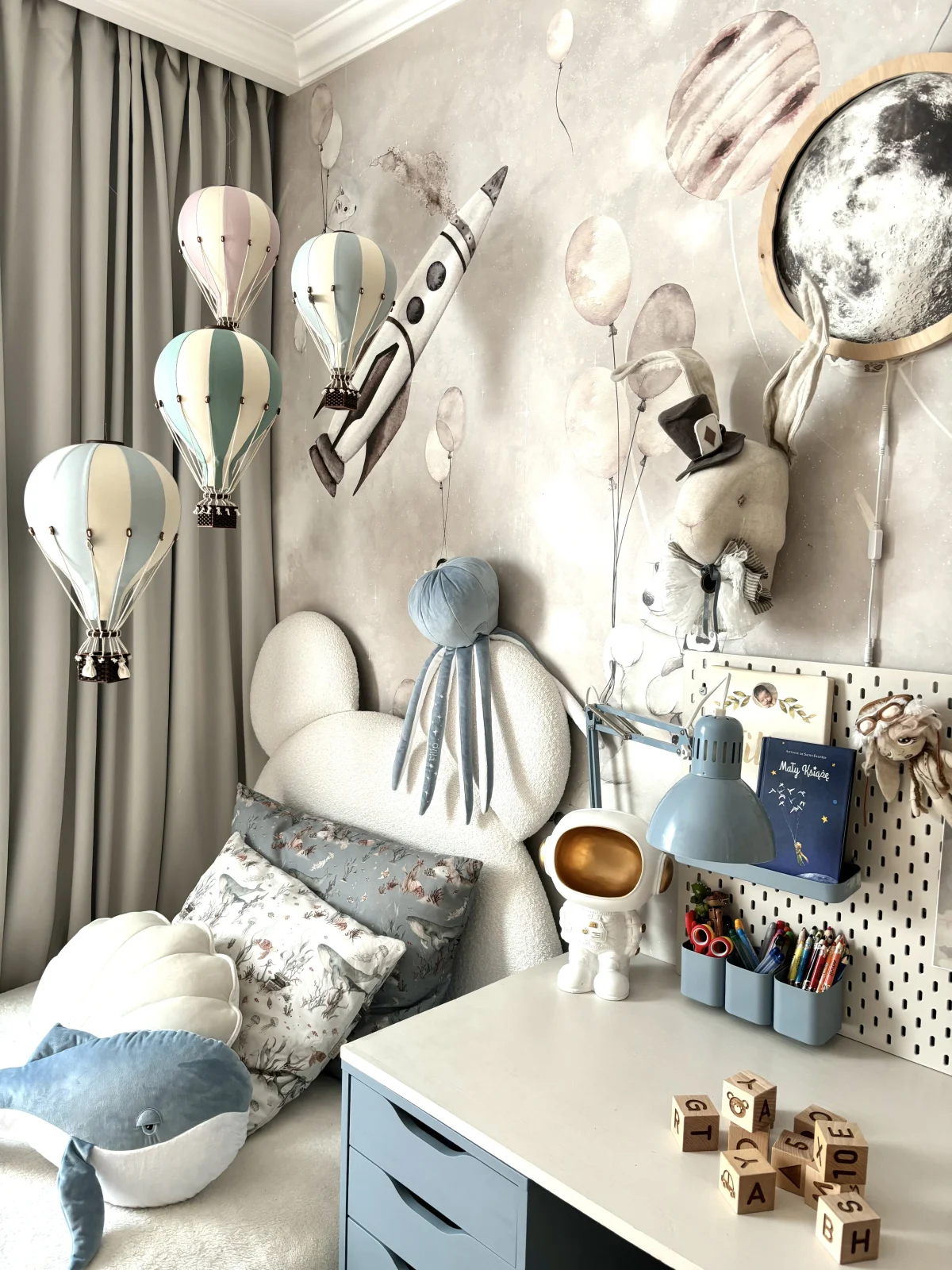 Balonul va crea o atmosfera placuta si va contribui la realizarea unui decor de poveste in camera celor mici. Se poate folosi atat ca decoratiune prin agatarea lui de tavan cat si deasupra unui patut sau alaturi de un baldachin pentru coltul de citit sau joaca. Acesta include sistemul de agatare.