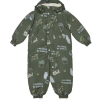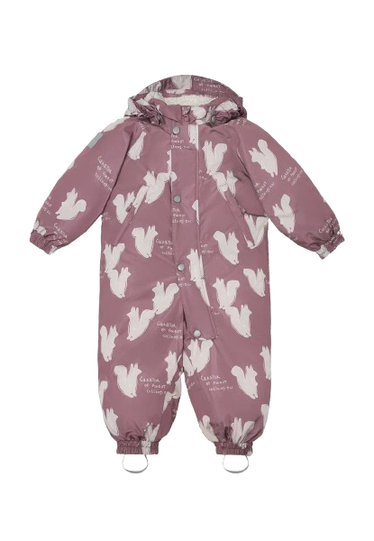 Datorită manșetelor de pe mâneci și pantaloni, nu trebuie să vă faceți griji cu privire la pătrunderea aerului rece, în timp ce bretelele detașabile din silicon vă ajută să asigurați picioarele pantalonilor peste pantofii micutului. Gluga este detasabila si se fixeaza cu capse.