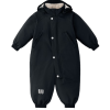 Datorită manșetelor de pe mâneci și pantaloni, nu trebuie să vă faceți griji cu privire la pătrunderea aerului rece, în timp ce bretelele detașabile din silicon vă ajută să asigurați picioarele pantalonilor peste pantofii micutului. Gluga este detasabila si se fixeaza cu capse.