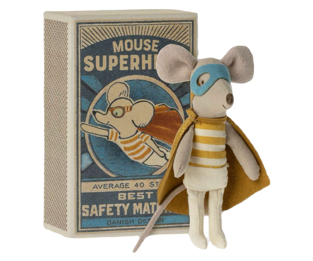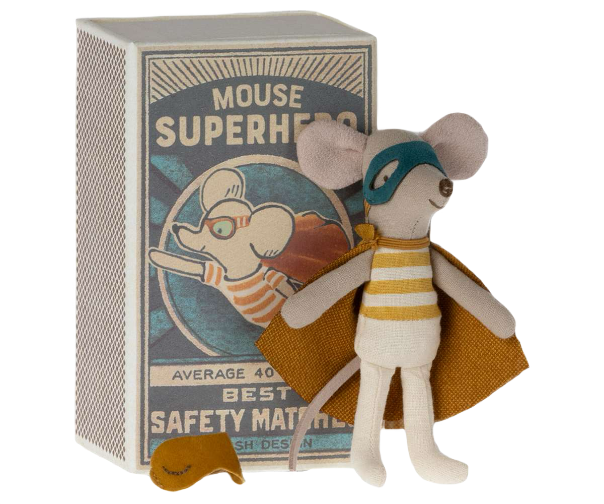 Super hero mouse, Little brother in matchbox - MailegSuper hero mouse, Little brother in matchbox – Maileg